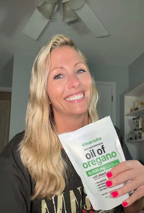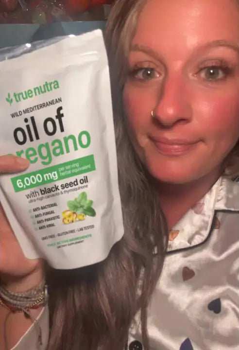 True Nutra’s Oil of Oregano works by using high-potency oregano oil rich in carvacrol, a natural compound known to fight off harmful bacteria, support immunity, and promote gut balance.